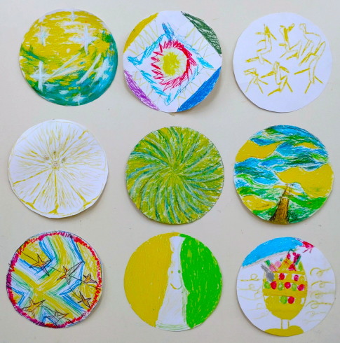 | 下段左から | 7 | レモンのかおりがスーッとしてふうりんみたいにかんじたので、このすずしそうないろをつかったえにしました。 |